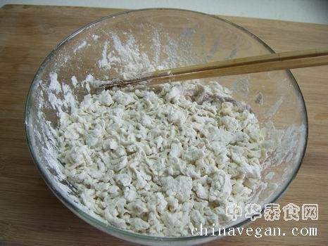 3. 把面粉拌成面疙瘩。拌面疙瘩的方法以前写过,直接粘过来供参考。