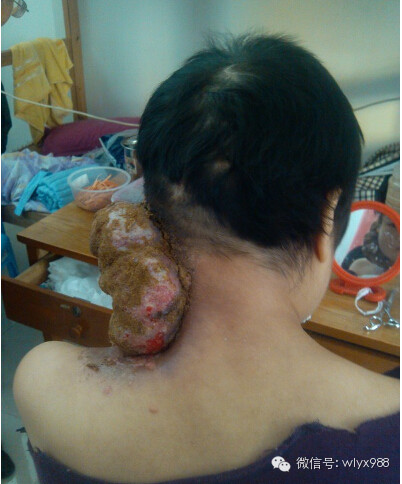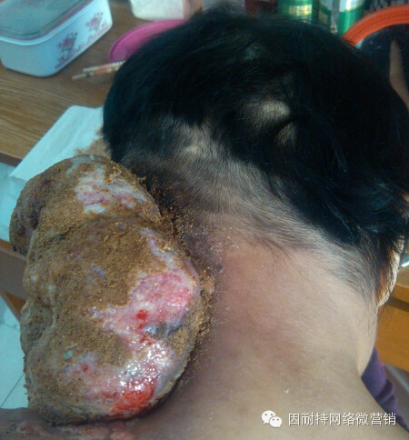 前天福建长乐后安寺住进一位三十二岁求念佛往生的女人,她是福建罗源人,颈部上长了一个奇特巨大流脓恶臭无比的肿瘤。经过医生多次会诊化疗,不但没有化解现状,反而急剧加大肿瘤的病变。奇特的是肿瘤发展到这种程度,却没有影响到其它器官。她深深体会到了因果报应丝毫不爽。