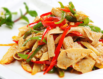 辣椒炒豆皮(图片来源:慈实) 食材:干豆皮,竹笋,青红尖椒。 调味料:美极酱油,花椒油,辣油,生抽,姜。 制作方法: (图片来源:慈实) 上一页 1 2 下一页