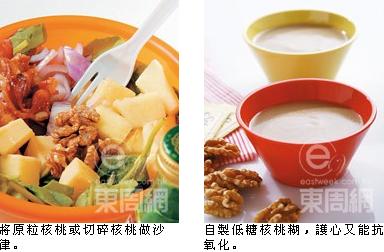 为何有如此超卓效果?陈劲芝解释,核桃本身不饱和脂肪酸含量极高,达89%,不饱和脂肪酸对饱和脂肪酸比率高达9:1,比橄榄油的4:1更强。饮食中不饱和脂肪酸对饱和脂肪酸比率愈高,对改善新陈代谢愈有利。加上核桃含纤维质、植物蛋白及高抗氧化能力,对整体饮食习惯、体重、血压、血胆固醇均有较多好处。